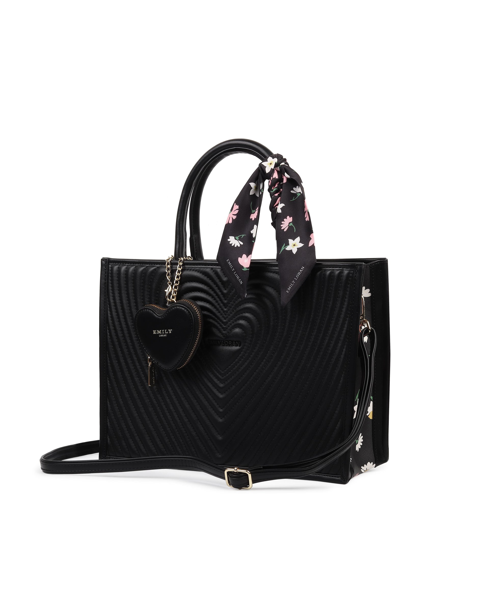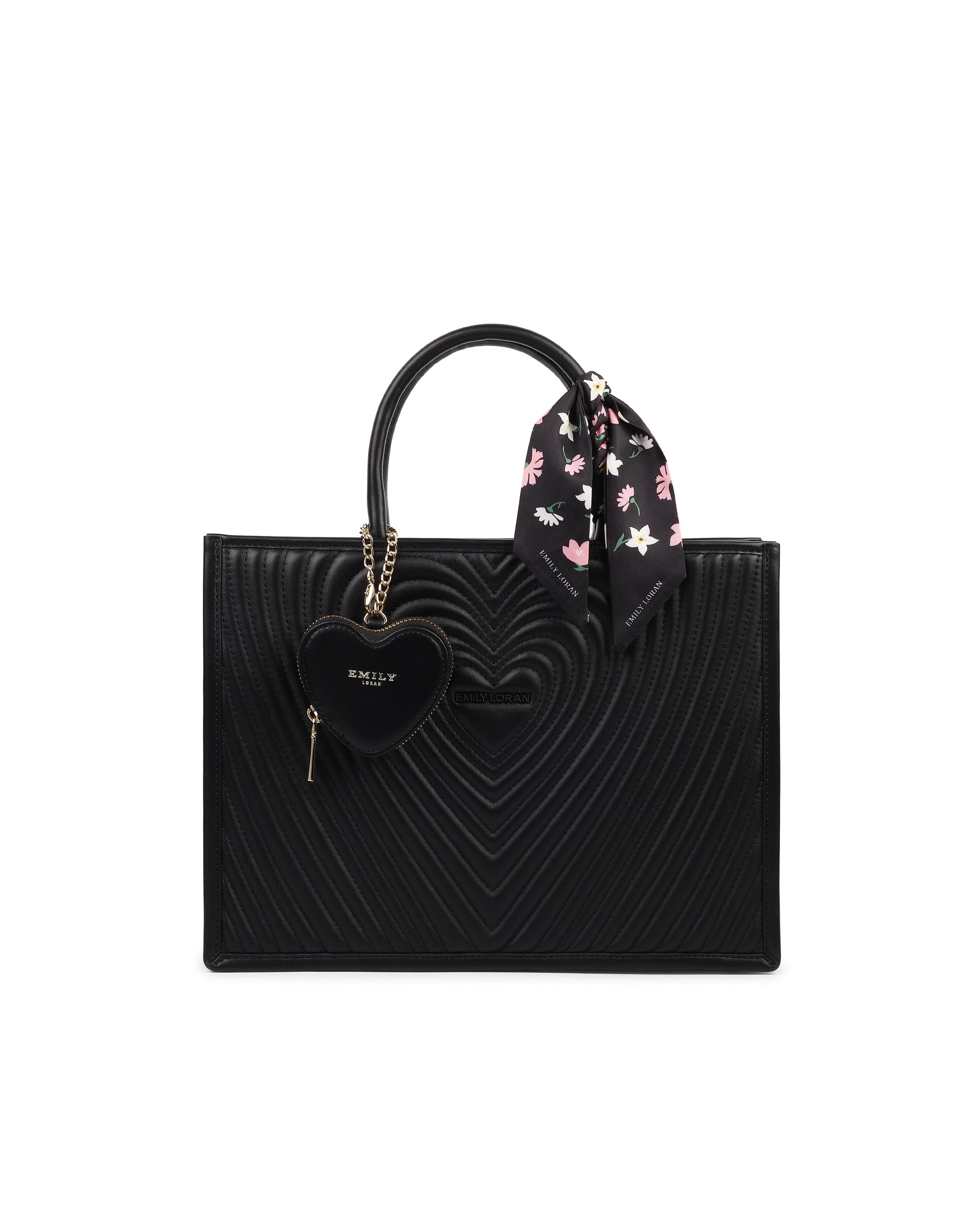 The Aurelia Handbag is an elegant and spacious regular-size tote designed for women who love refined style with everyday functionality. Crafted with a structured silhouette and sophisticated quilted heart-pattern detailing, this tote makes a statement while remaining practical. Accented with a decorative scarf-wrapped handle and a detachable heart-shaped mini pouch, the Aurelia Handbag blends luxury charm with daily usability. Its roomy interior makes it ideal for carrying essentials while maintaining a polished, graceful look.